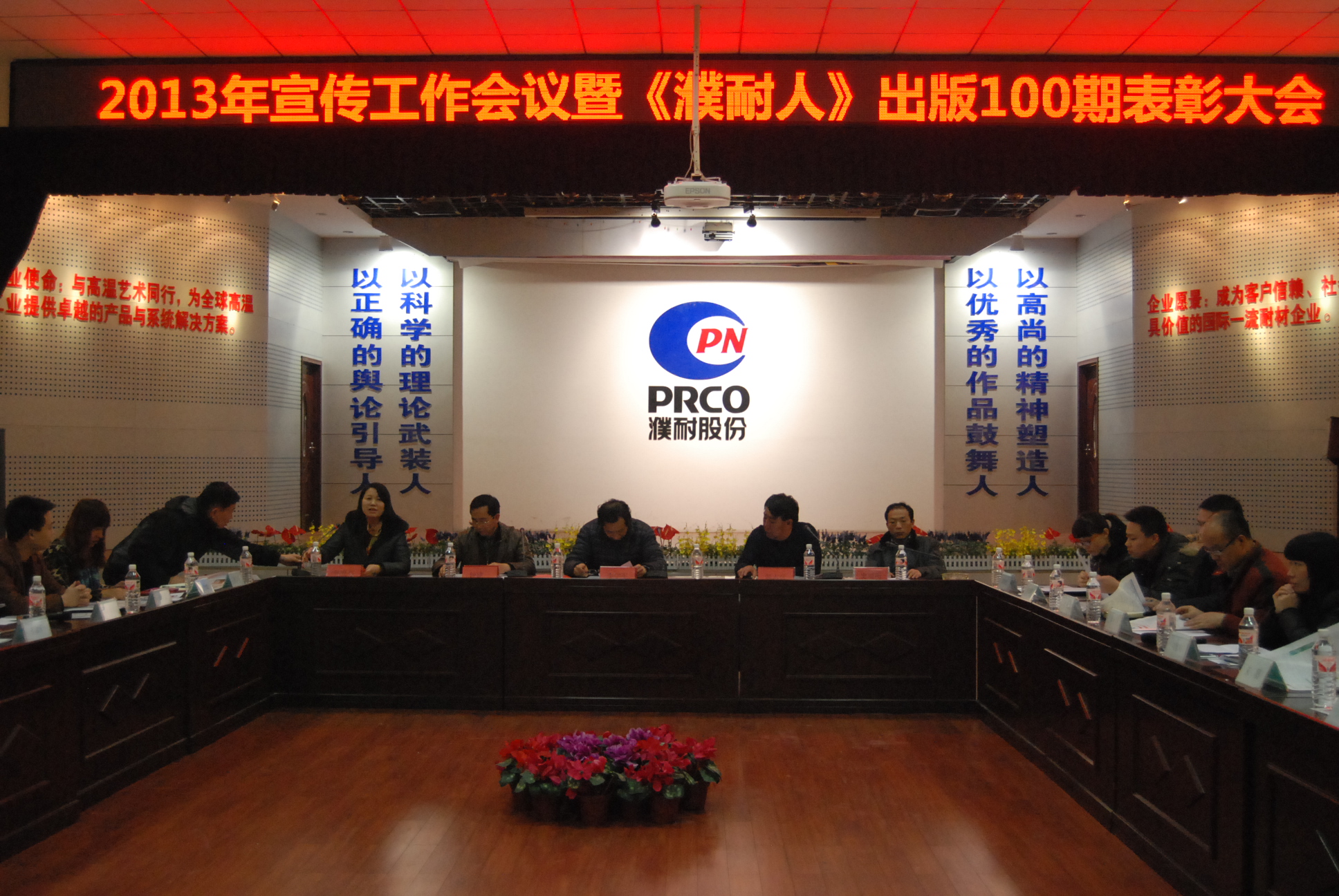 韩爱芍在主持词中说:“桃李春风一杯酒,江湖夜雨十年灯”。在公司各级领导的支持和各位投稿者的热情参与下,在公司所有员工的共同努力下,承载着历史的嘱托,肩负着时代的使命,到今年12月1日《濮耐人》出版100期了,真是可喜可贺。她总结了历史经验,明确了努力方向,为濮耐的发展起到了积极的推动作用,具有切实和深远的意义,《濮耐人》作为公司的唯一报刊,在向国内外客户介绍濮耐、传播公司新闻信息、丰富员工文化生活等方面发挥着重要的作用。《濮耐人》的创建,使公司的超前管理理念和以人为本的意识得以迅速传播。它既是濮耐公司的灵魂所在,也是促使公司的精神内涵得以传承的重要载体。为进一步办好《濮耐人》,更好的做好我公司的宣传工作,今天我们在这里隆重召开会议,意在表彰为《濮耐人》发刊100期做出突出贡献的10名优秀通讯员和10篇优秀稿件,探讨下一步宣传思路和2014年宣传工作重点。