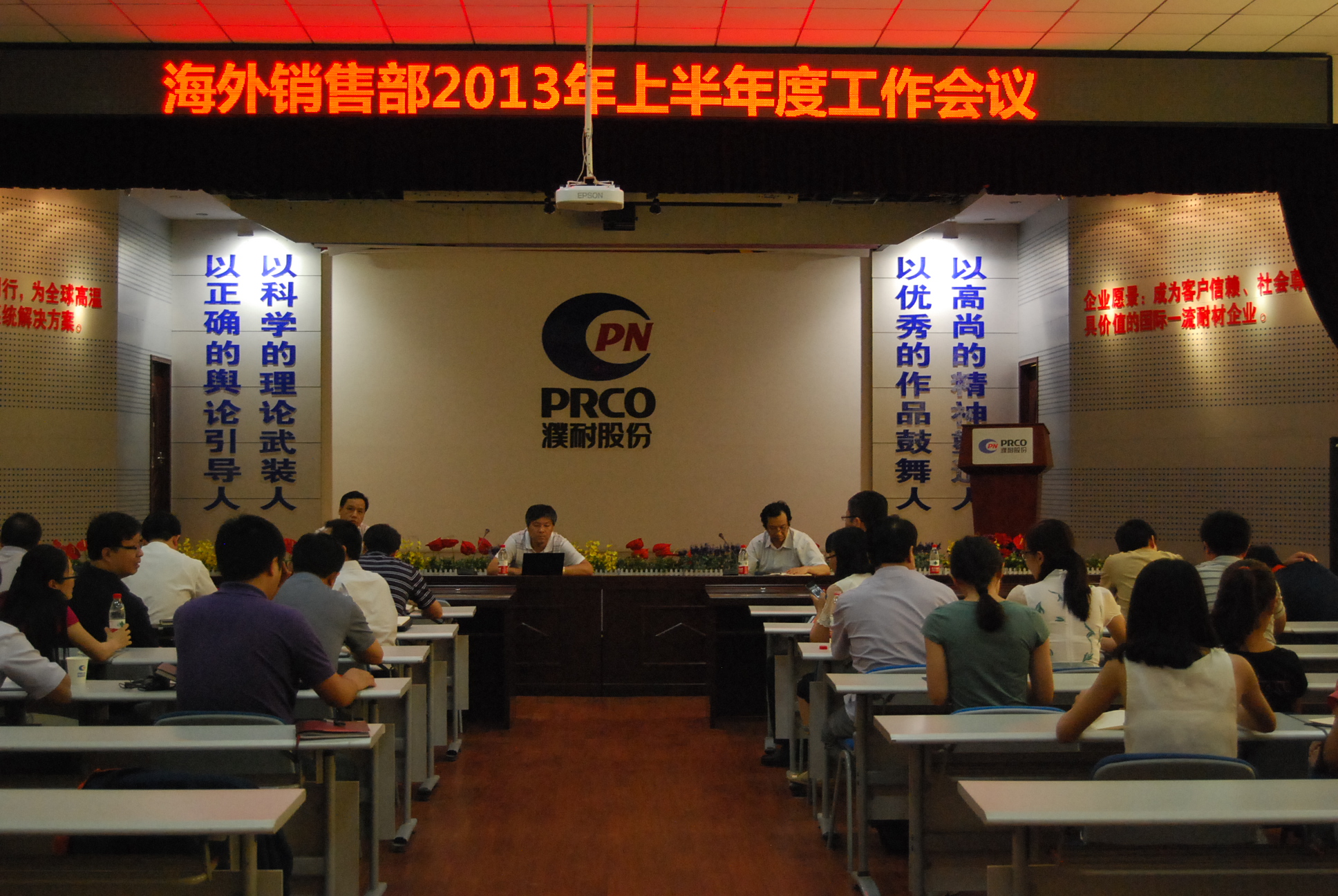 2013年6月27日至6月28日,海外营销部2013年年中工作会议在濮耐股份集团本部顺利召开。集团公司董事长刘百宽,总裁李学军,主管副总裁马文鹏、副总裁张厚兴,海外营销部全体人员、公司技术人员及其它部门相关人员参加了本次会议。
