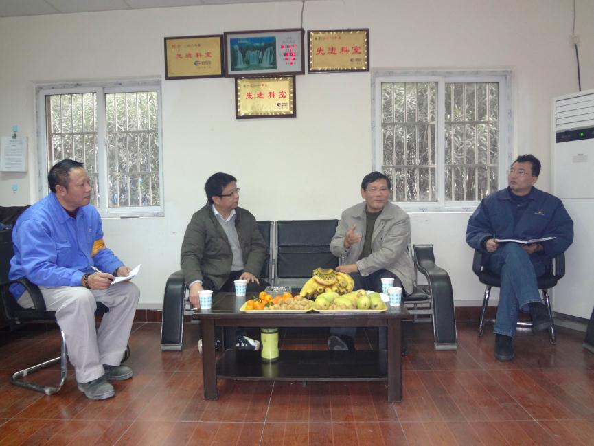 2013年1月8日上午,宁波钢铁公司总经理刘安及制造管理部、运营管理部相关领导一行5人前往濮耐驻宁钢项目部进行调研。刘安肯定了濮耐5年来对宁钢发展所作出的积极贡献,濮耐集团副总经理易志明就项目部工作和濮耐集团近几年的发展进行了介绍。图为刘安与易志明进行亲切交流。 (史恪印图/文)