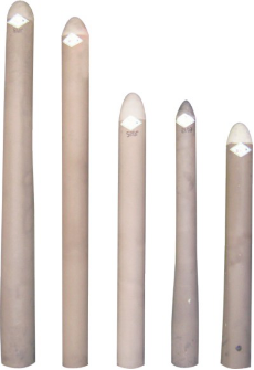整体塞棒使用时安装于中间包内,用于控制钢液从中间包至结晶器的流量。PN系列整体塞棒分为铝碳质和镁碳质,适用于浇铸不同的钢种;通过数模为客户设计的各种棒头分别适用于大方坯、小方坯,矩形坯、圆坯,大板坯、薄板坯等连铸。该产品具有良好的抗冲刷性能、抗侵蚀性能;浇铸过程中控流稳定,浇铸完成后关闭严密等优点。
